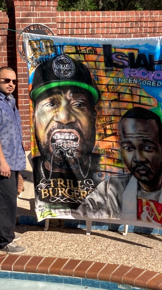 One thought on “#alexairbrushluna mural of #bunb #trillburger and #isaacandmore”